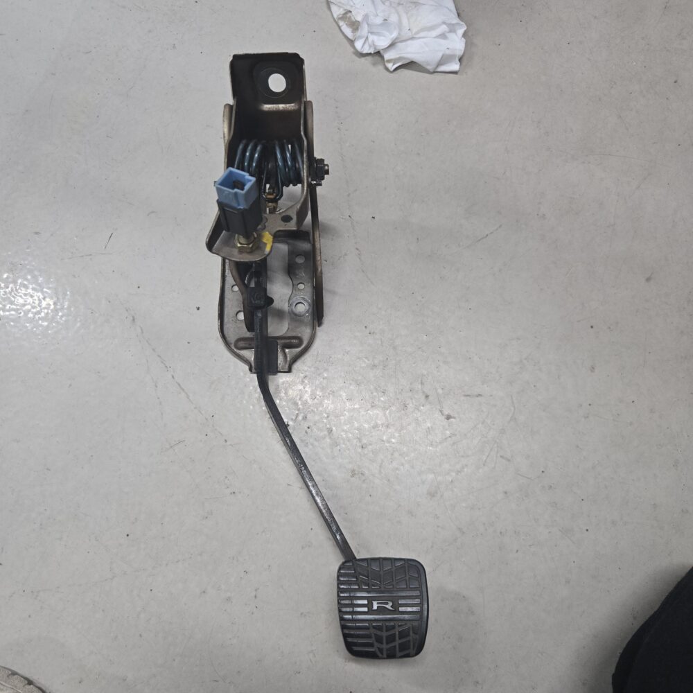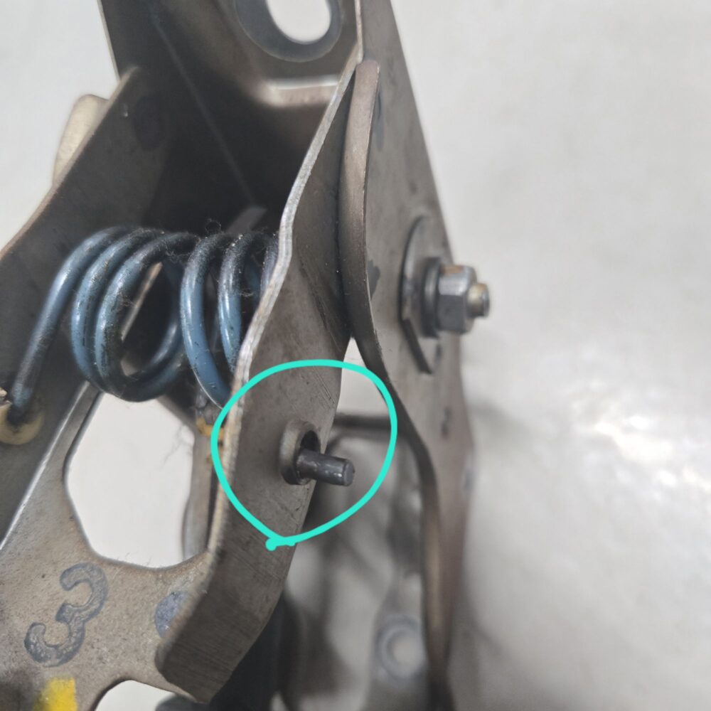 クラッチペダルブラケットのスプリングが刺さるこの緑丸部分。ここに通常はプラスチックのブッシュがあるんですが砕けて無くなってます。